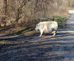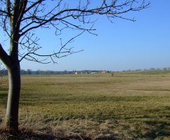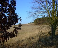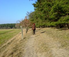 Der Rundweg startet in Fresdorf, in wenigen Minuten ist man schon am Kähnsdorfer See und kann den Ausblick auf die komplett von Schilf umgebene Wasserfläche genießen. Anfang März 2018 gab es nochmal einen Kälteeinbruch mit Kahlfrost, so dass der See komplett zugeforen war. Der Weg führt dann durch die für mich typische und absolut idyllische Feuchtgebietslandschaft des Naturparks mit Wechsel aus Offenlandschaft und Waldflächen. Trotz der frostigen Temperaturen gab es Begegnungen mit landwirtschaftlichem Nutzvieh: Ein Schwein trottete gemütlich über den Weg und junge Rinder auf einer Weide beäugten neugierig die Wanderer. Unbedingt dann dem schmalen Wanderweg der sich entlang des Mühlenfließes durch ein Waldgebiet schlägelt, folgen. Nach der Ortschaft Stücken geht es durch eine weite Feuchtwiesenlandschaft mit grandiosem Weitblick. An einigen Bäumen sind Nisthilfe für die Steinkäuze zu entdecken, lange Kästen, die der kleinen Eule die Ansiedelung im Naturpark unterstützen sollen. Die daran anschließenden „Bergaufstrecken“ über die kleinen Hügel des Fichtenberg und der Grämitzberge liegen in Waldflächen und wechseln sich mit freien Flächen immer wieder ab, so lassen sich immer wieder abwechslungsreiche Ausblicke in alle Richtungen genießen.